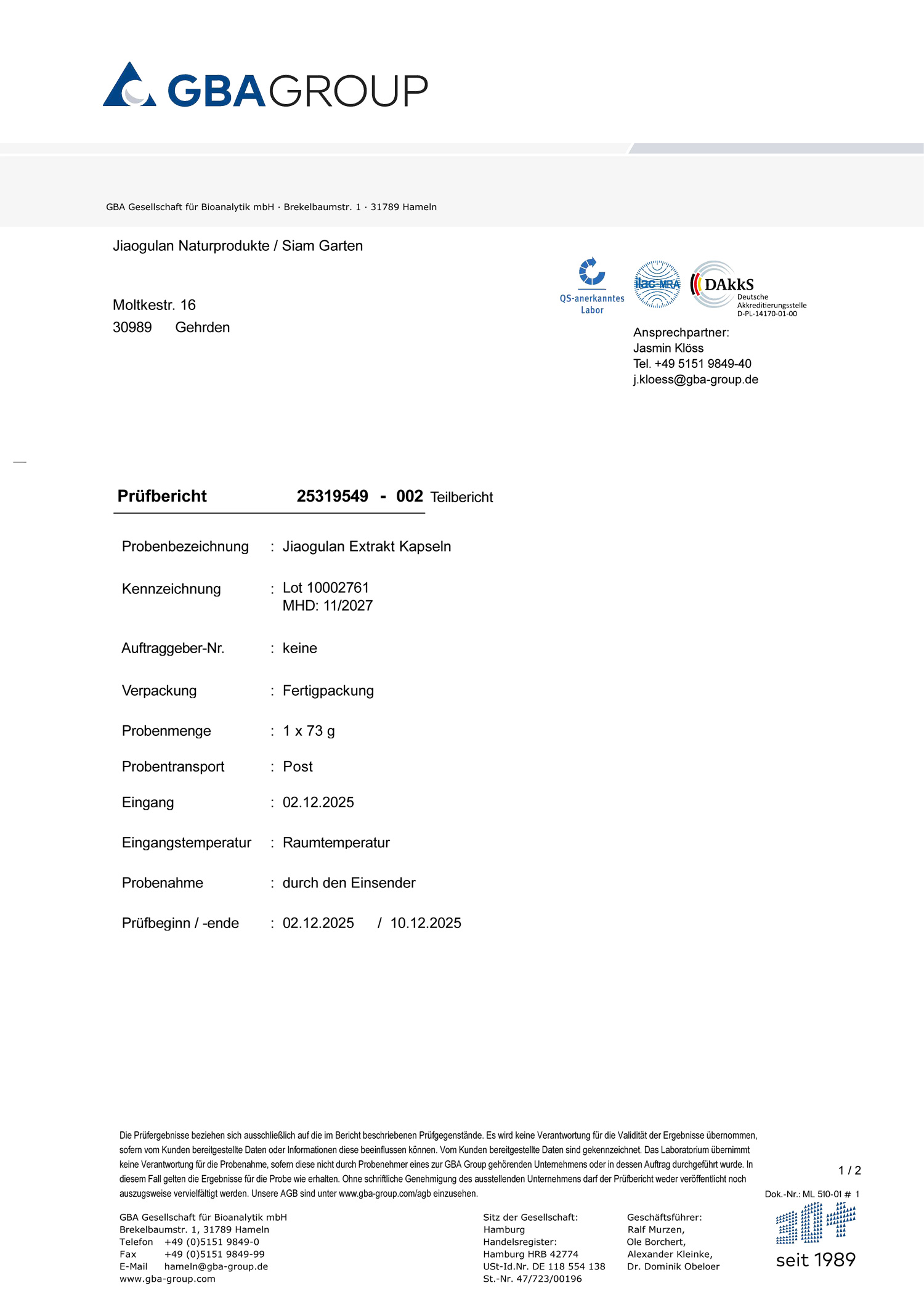 - pro Kapsel 500 mg Jiaogulan-Extrakt: entspricht 2 g Jiaogulan-Pulver