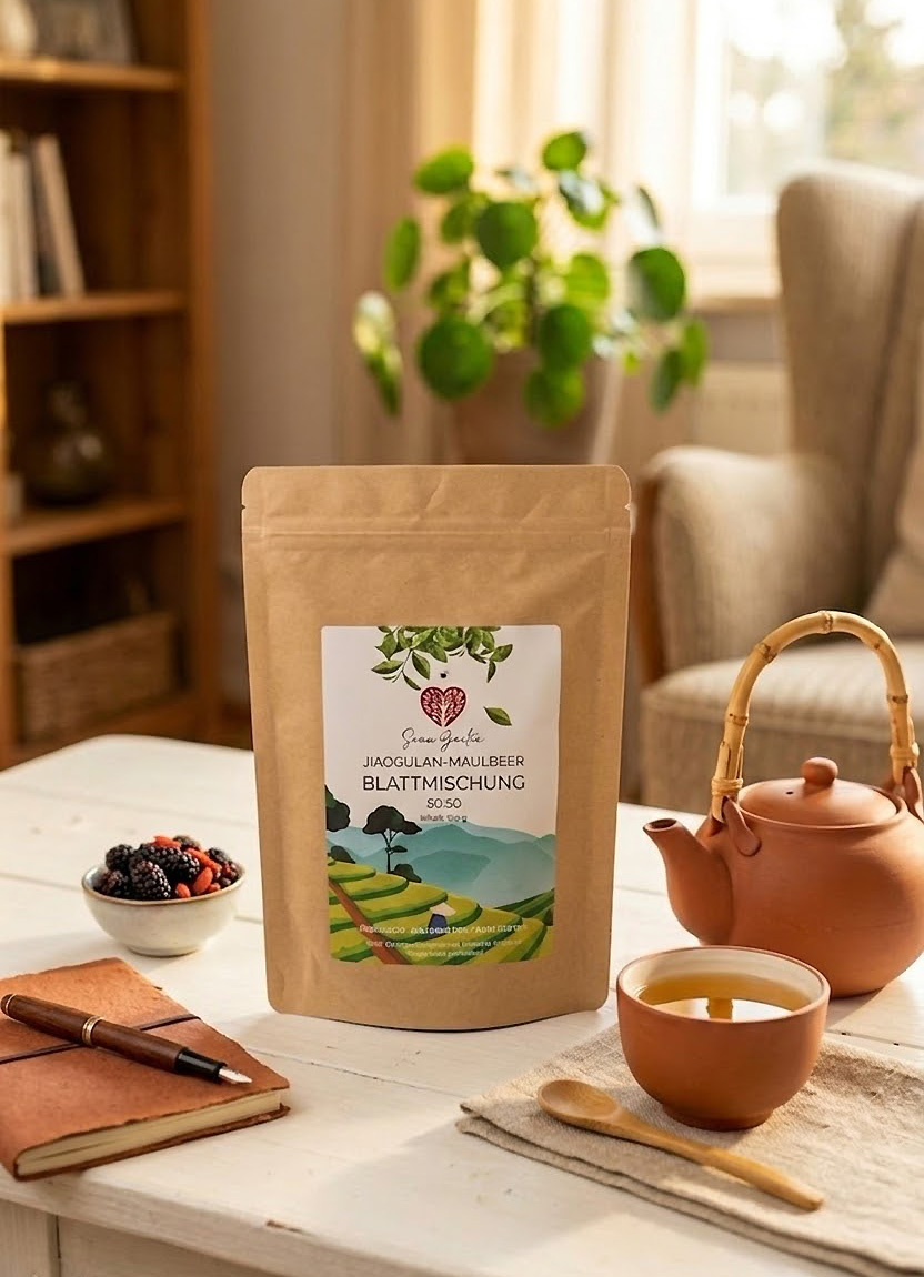 Nährstoffreiche Mischung aus Jiaogulan und Maulbeer-Blättern Nicht nur Teeliebhaber werden von dieser Mischung aus Jiaogulan und Maulbeer-Blättern begeistert sein. Denn sie schmeckt nicht nur aromatisch, sondern ist auch reich an Nährstoffen und Vitaminen.